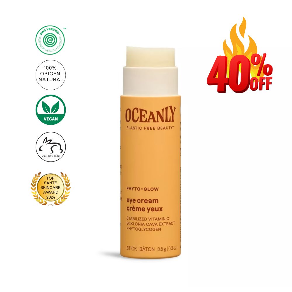 La barra de crema para ojos PHYTO-GLOW se basa en la fusión de tres ingredientes poderosos: vitamina C encapsulada y estabilizada para iluminar y unificar el cutis, extracto de ecklonia cava obtenido de algas ricas en polifenoles conocidas por sus propiedades antioxidantes y fitoglicógeno para restaurar la luminosidad. El resultado: un instante de resplandor en el contorno de ojos + completa tranquilidad.