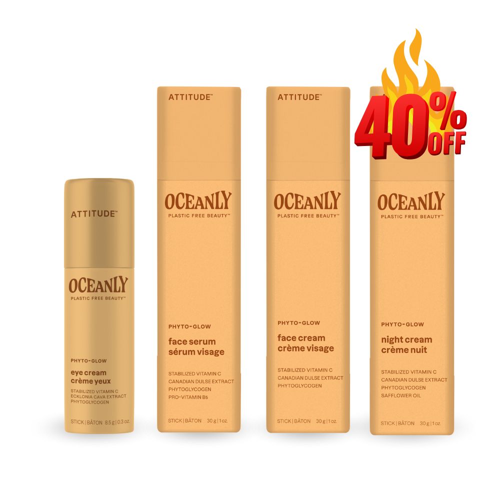 Conjunto de descubrimiento de 4 productos sólidos luminosos para el cuidado de la piel, para limpiar, tratar e hidratar la piel, proporcionando un cutis radiante y saludable.